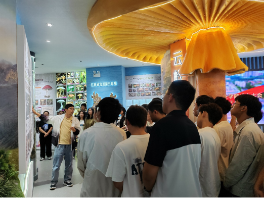 在展馆现场,李翠新、王庚申两位老师以“从森林到餐桌”为主线,为同学们带来了一场别开生面的“开学第一课”,帮助新生快速建立专业认知,激发同学们对食用菌学科的兴趣,对自己的四年成长路径有了更清晰的想象。